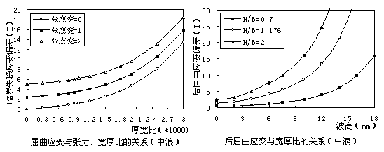 為較精確地分析薄板屈曲失穩(wěn)限與后屈曲變形過程,首先利用屈曲分析進(jìn)行預(yù)計(jì)算,然后將這一線形條件下的 計(jì)算結(jié)果作為基準(zhǔn)載荷帶入非線性結(jié)構(gòu)分析模塊中計(jì)算出最終結(jié)果。對計(jì)算結(jié)果按不同寬厚比和不同加載形狀進(jìn)行分析,分析結(jié)果如圖所示。